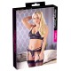 Suspender belt with lace inserts, a bit of lacing at the front, a hook-fastener at the back and six adjustable suspender straps. Black. 90% polyamide,..