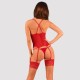 Corpo em uma cor vermelha sensualLindo material brilhante e delicada renda floralDetalhes decorativos douradosCopas com aro para um decote sexyAlças a..